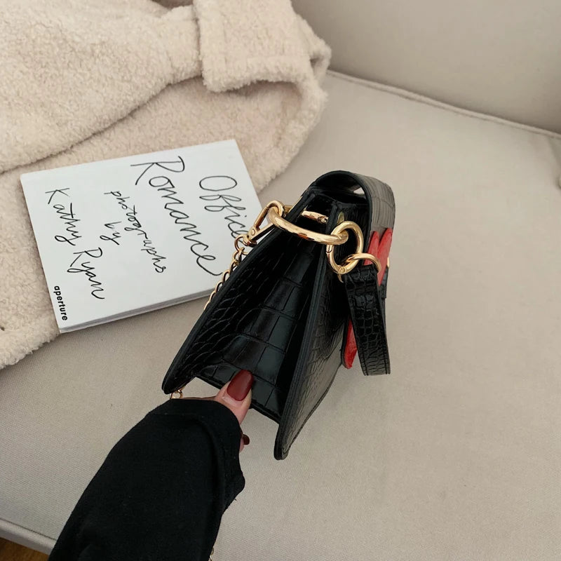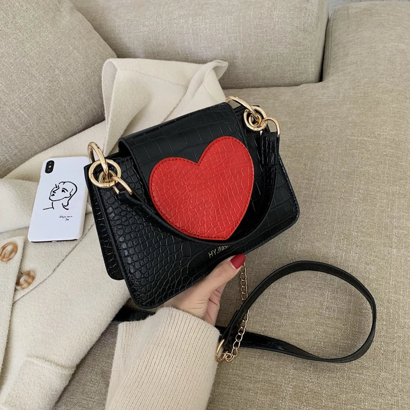This stylish shoulder bag features a red heart design, perfect for parties or everyday use. Made from high-quality PU material, it makes a great gift for women.