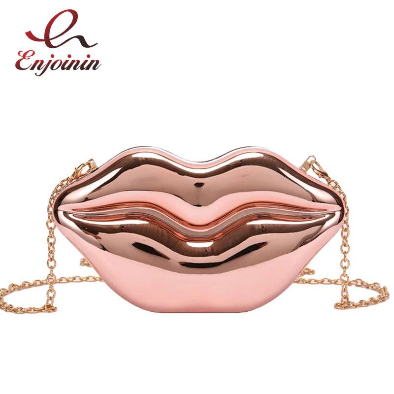 Make a statement with this elegant red lip styling evening bag, perfect for weddings and parties. It doubles as a clutch or crossbody with a shoulder chain.