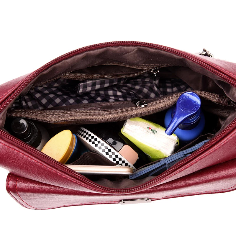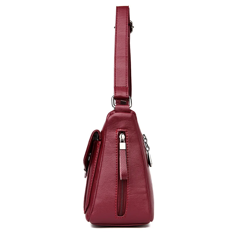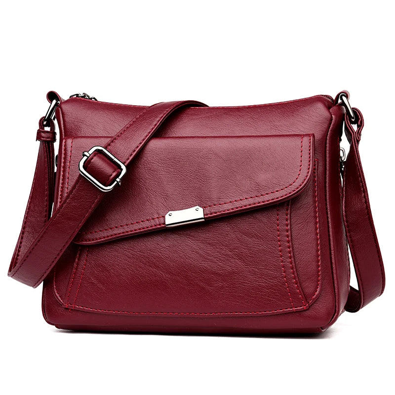 This small red crossbody bag is made of very soft PU leather, perfect for casual outings. It's a stylish and practical purse for ladies.