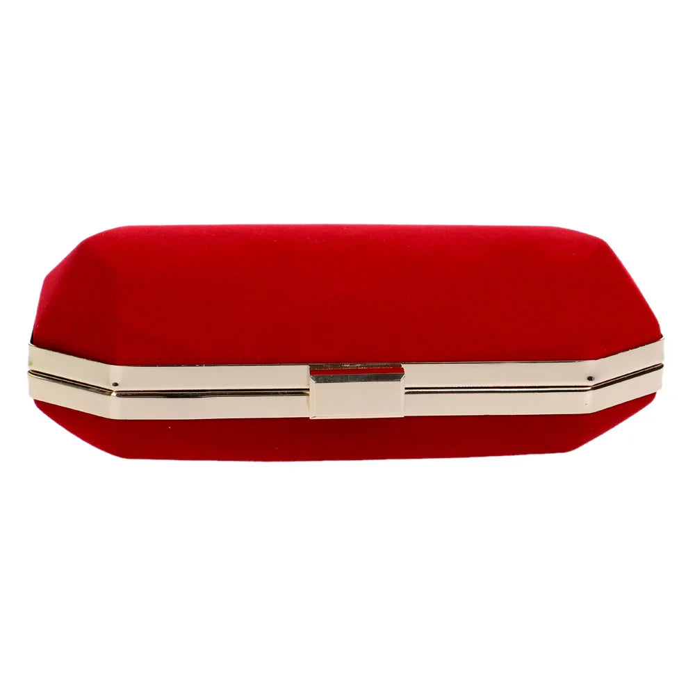 Red Velvet Evening Clutch Bag with Chain Strap for Wedding Party