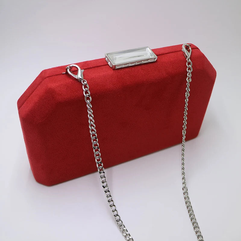 Red Velvet Suede Evening Clutch with Shoulder Chain