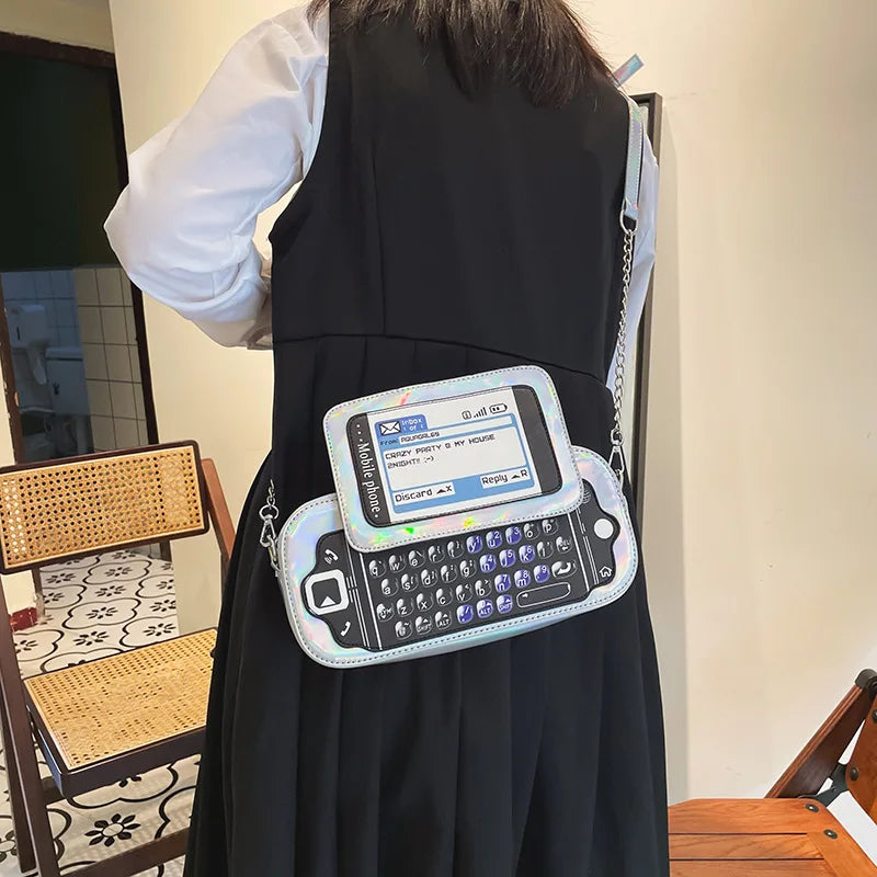 Stay stylish on the go with this trendy mobile phone shape crossbody bag. Perfect for women and girls, the reflective purse is a versatile accessory.