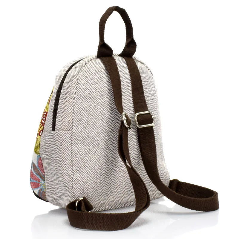 This small rucksack features a bohemian design with floral embroidery, perfect for women who love retro styles. Made of durable canvas material, it is ideal for carrying essentials in a chic and fashionable way.