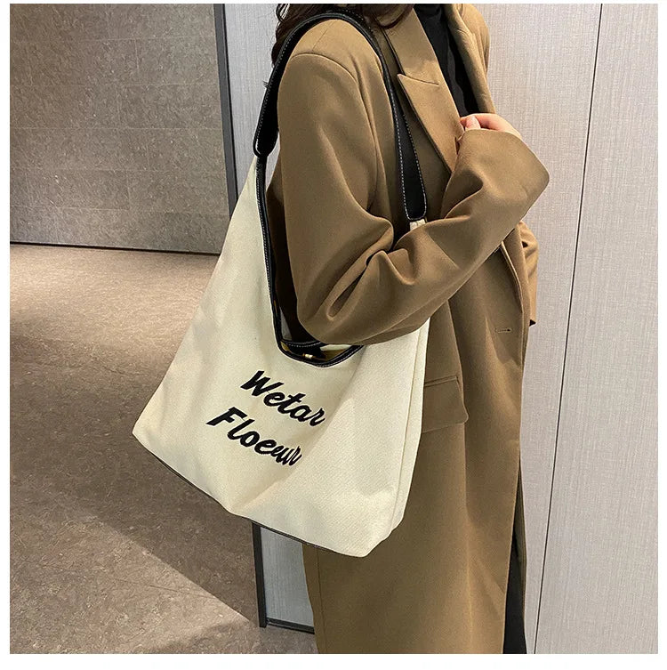 Stay stylish with this retro canvas shoulder bag featuring a letter design. It offers ample space with a large capacity for all your essentials. Perfect for a casual or literary look.
