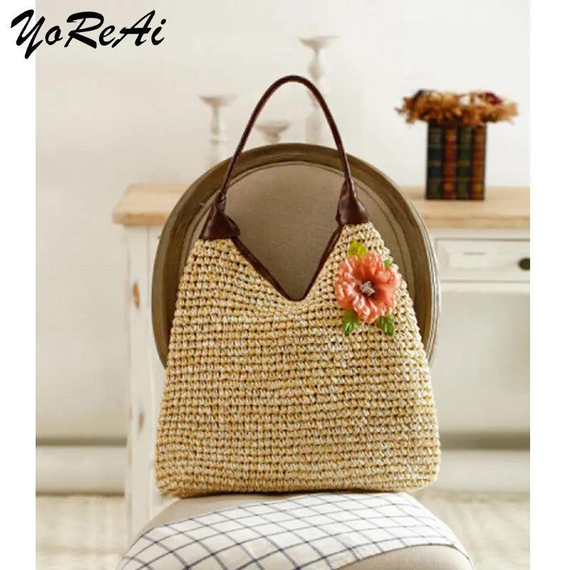 Upgrade your style with this Bohemian beach bag that combines retro and casual elements. Perfect for shopping or a day out, this straw handbag for women is a must-have accessory for 2021.