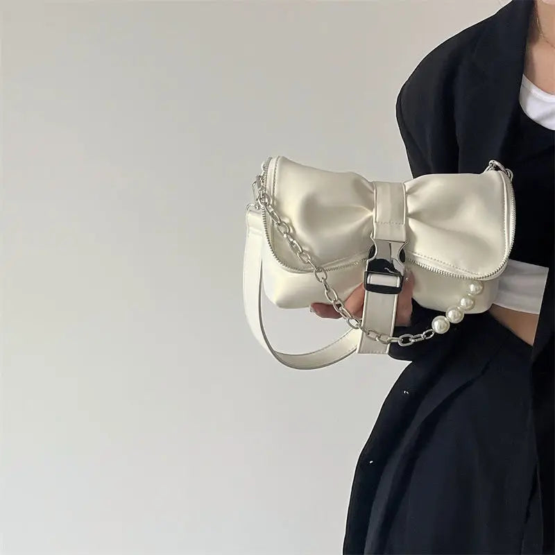 Retro Chain Bow Tie Leather Handbag Harajuku Style Tote Bag