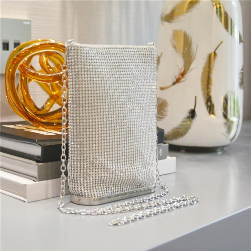 Elegant and sparkly women's evening bag perfect for weddings, parties, and banquets. This clutch features crystal rhinestones for a glamorous look.