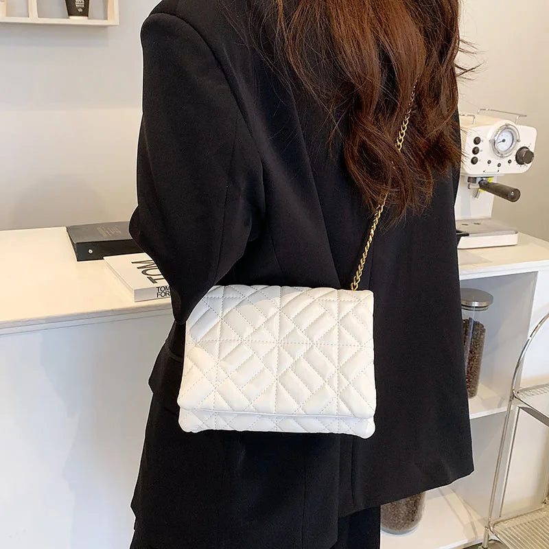This fashionable shoulder bag is made of high-quality leather with a retro design. It features a flap closure and a metal chain for added style. Perfect for any occasion.