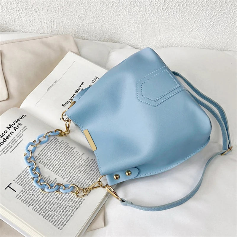 Retro Female Chain Tote Bucket Bag Women Chain Pu Leather Portable Handbag