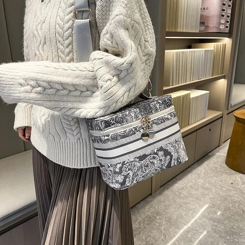 This retro lady cosmetic bag is perfect for storing your makeup essentials while traveling. It features a famous women design and is great for organizing your lipsticks.