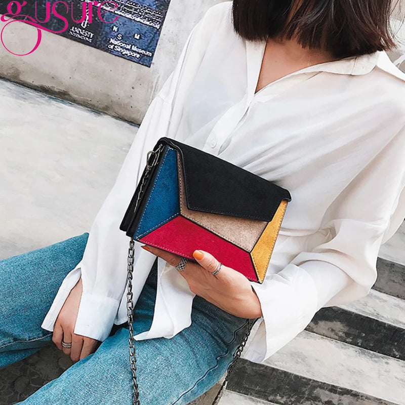 Retro Matte Patchwork Crossbody Bag Chain Strap Shoulder Bag Lady Small Flap