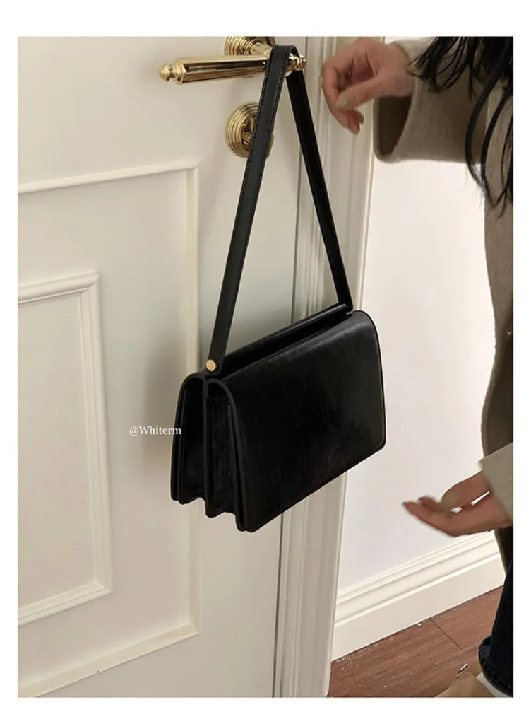 Retro PU Leather Single-Shoulder Bag French Organ Bag for Women