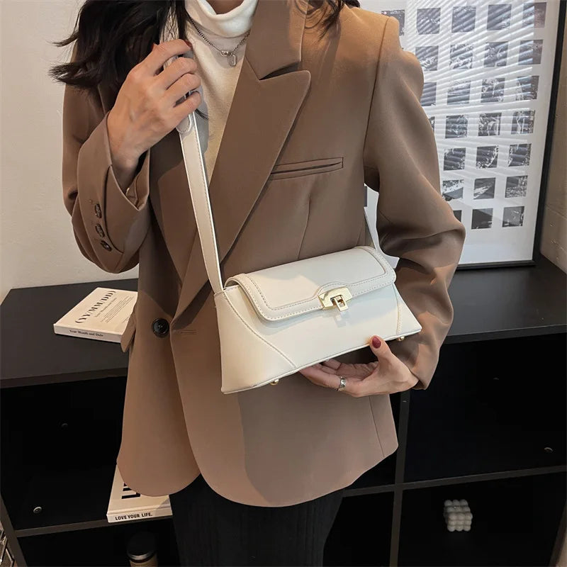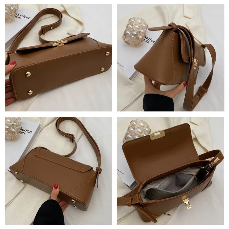 This small underarm shoulder bag exudes a vintage charm with its flip lock design. Made of high-quality PU leather, it's perfect for carrying essentials in style.