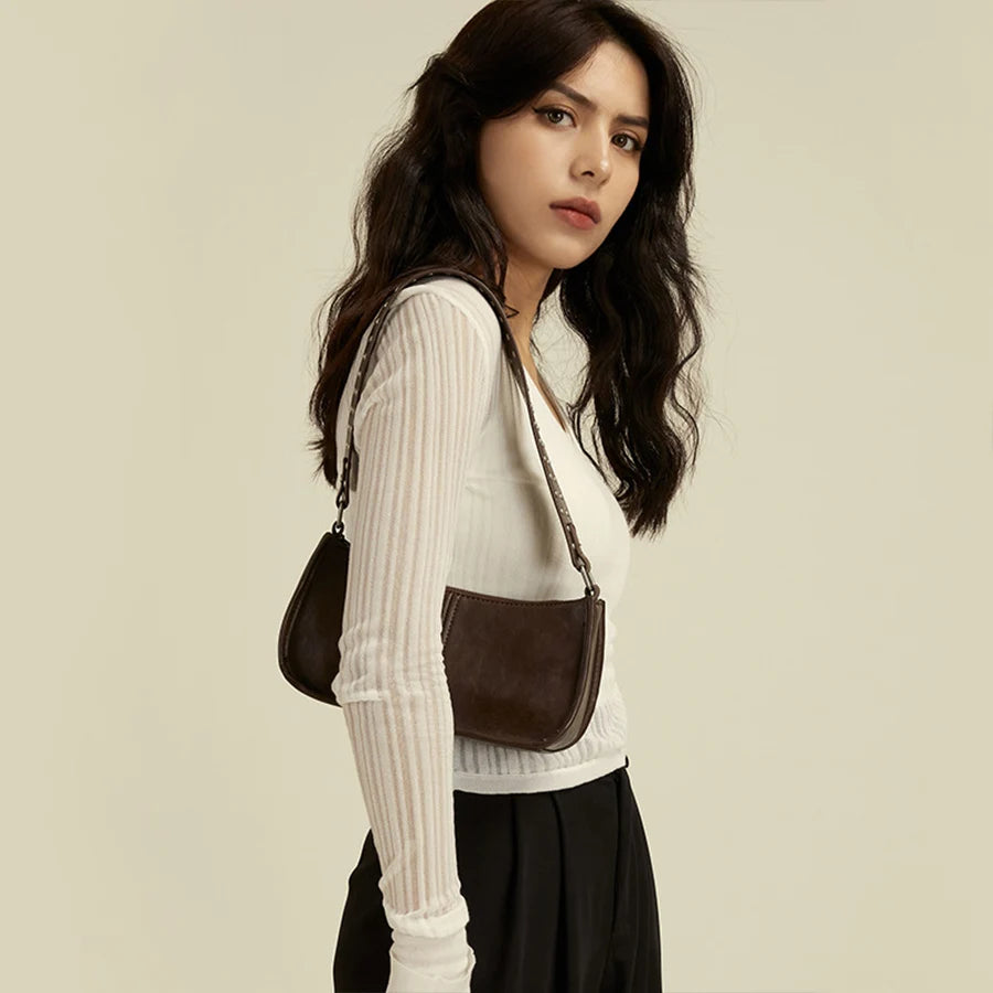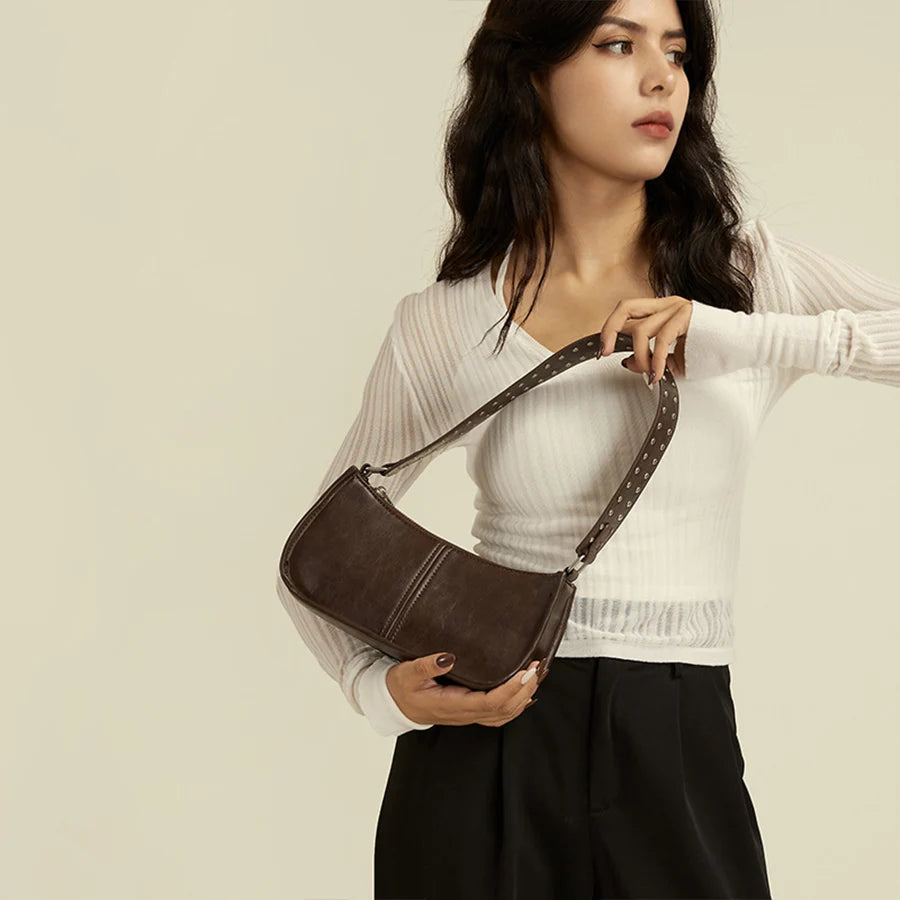 Retro Rivet Pu Leather Underarm Bag Coffee Totes