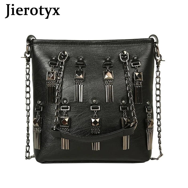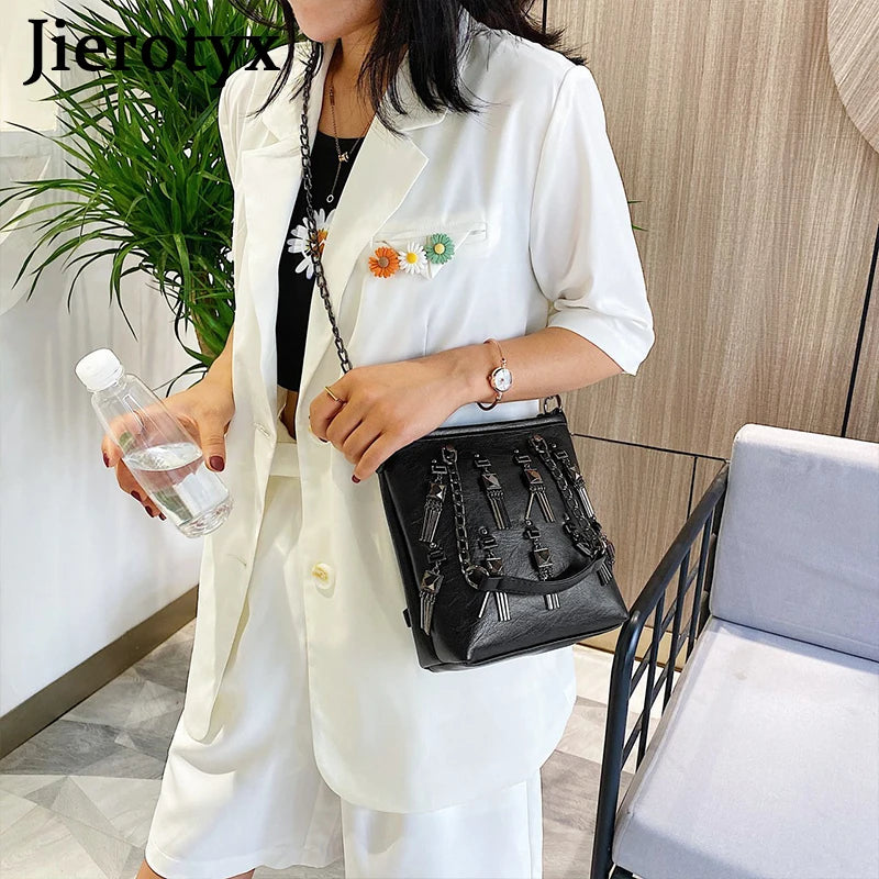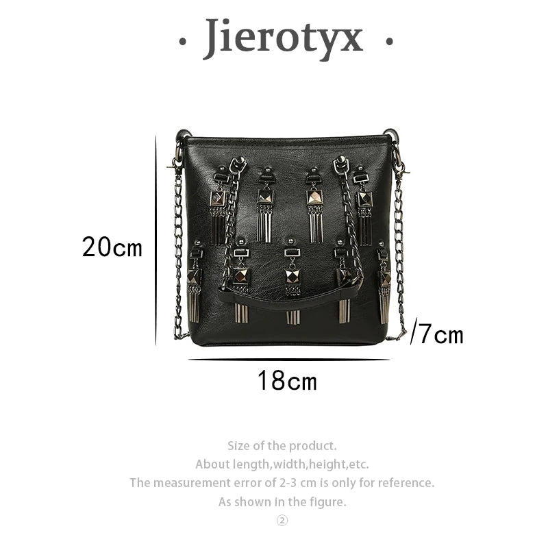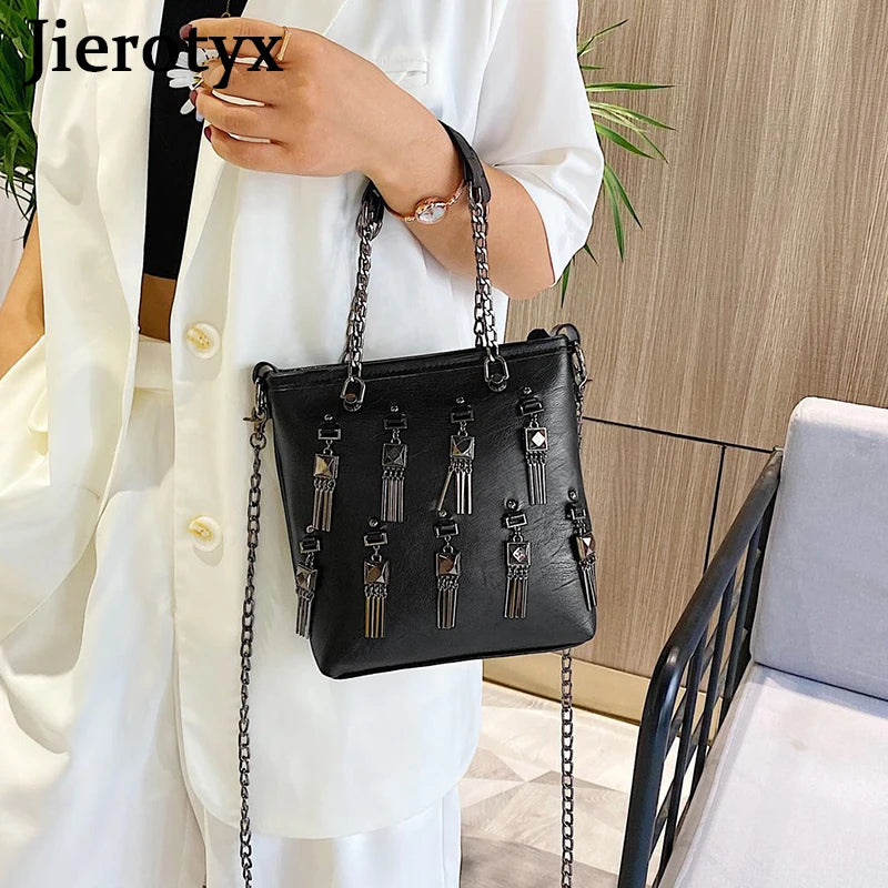 This stylish shoulder bag features retro rivet tassel design with metal decoration, perfect for shopping and daily use.