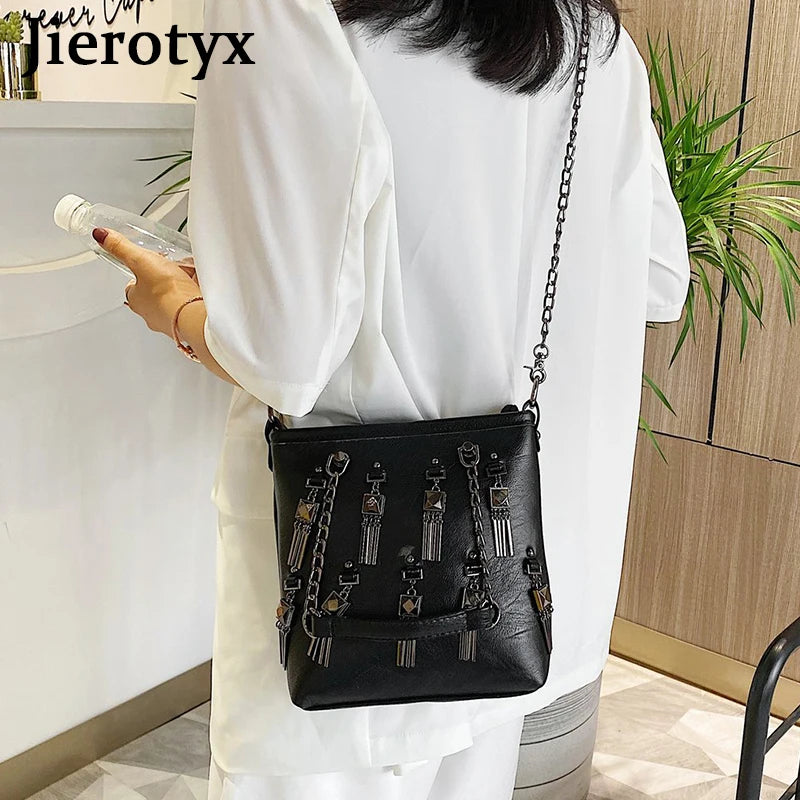 Retro Rivet Tassel Shoulder Bag for Women Chain Small Bag