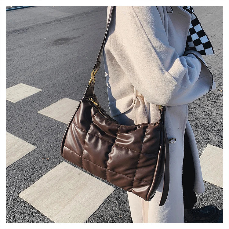 Elevate your style with this high texture PU leather shoulder bag. Perfect for autumn and winter, this retro armpit Messenger Tote Bag is a must-have for any fashion-forward woman.