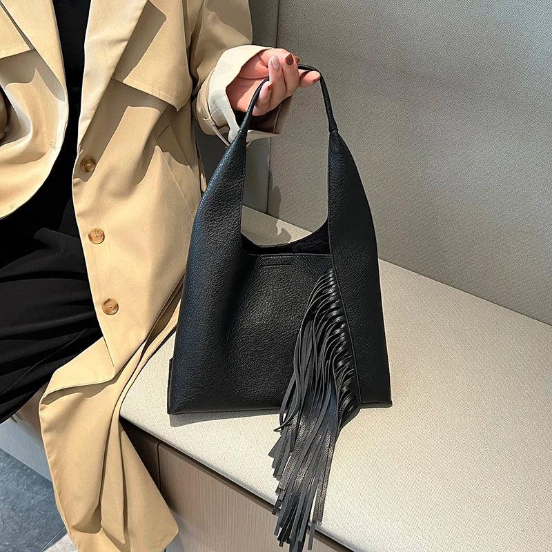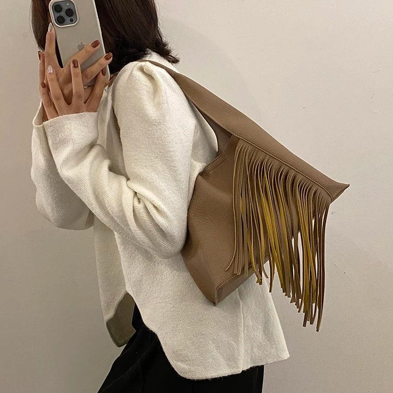 - Retro small handbag and purse set with tassels