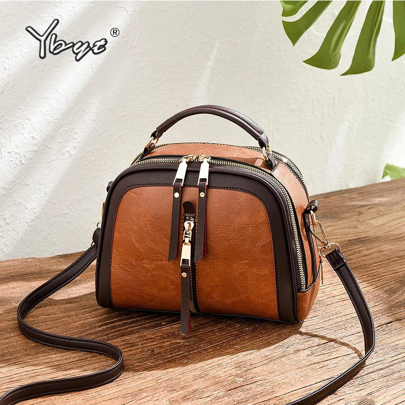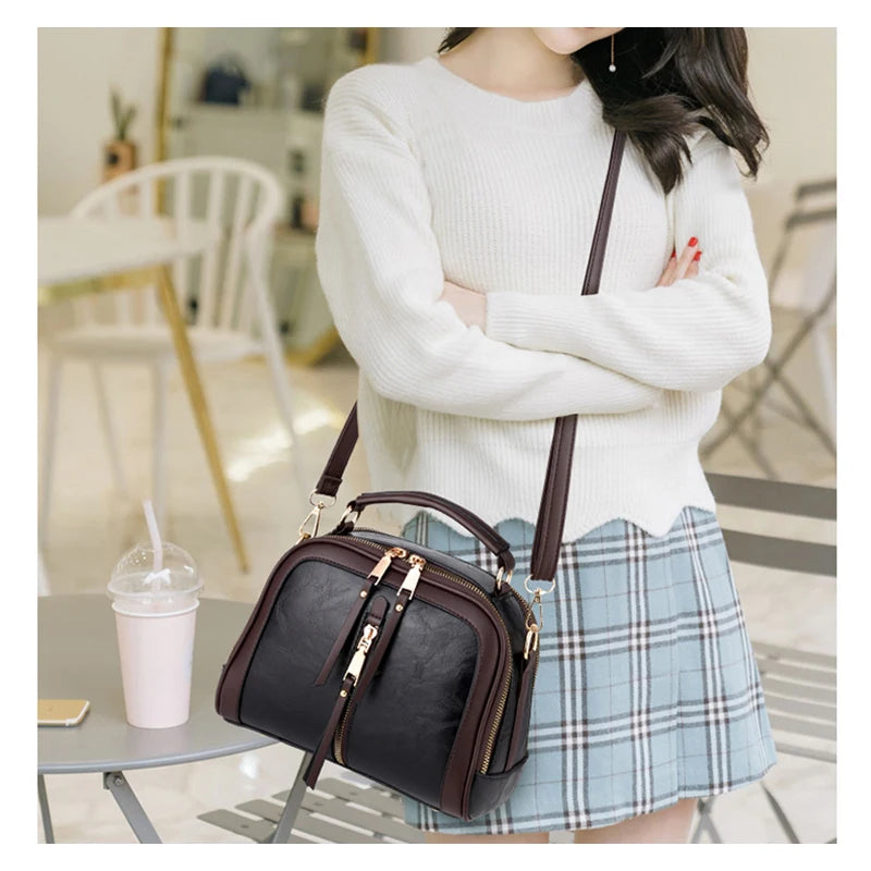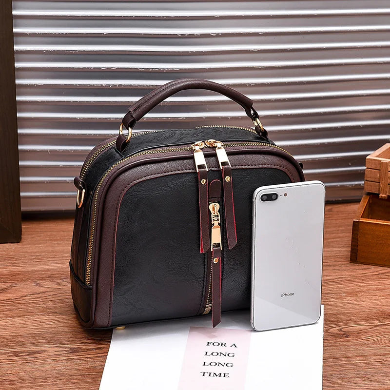 Retro Small Leather Handbag with Zipper, Women's Shoulder Crossbody Bag