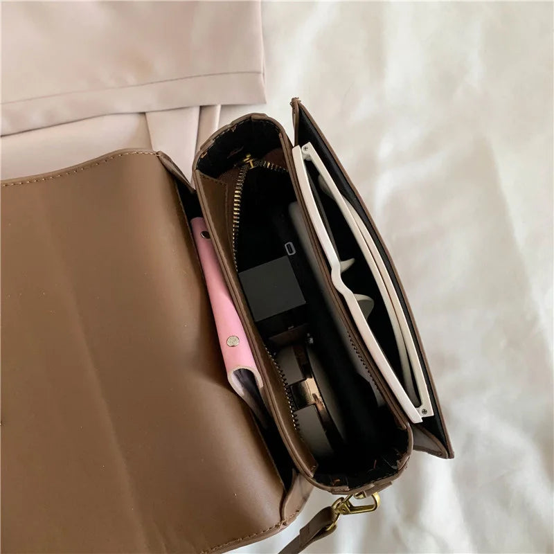This retro solid small crossbody bag is made of high-quality PU leather, perfect for women's everyday use. It can be worn as a shoulder bag, tote, or handbag.