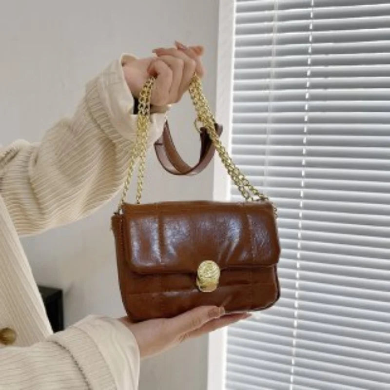 Retro Solid Underarm Bag Casual Lock Slung Small Square Bags
