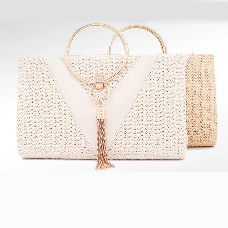 Retro Straw Clutch Bag with Tassel Handle, Crossbody Party Purse