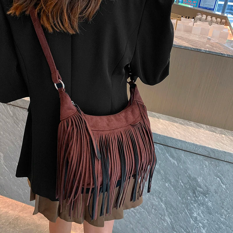 Retro Style Women Cross Body Bag Shoulder Bag Tassel Zipper Large Messenger Bag