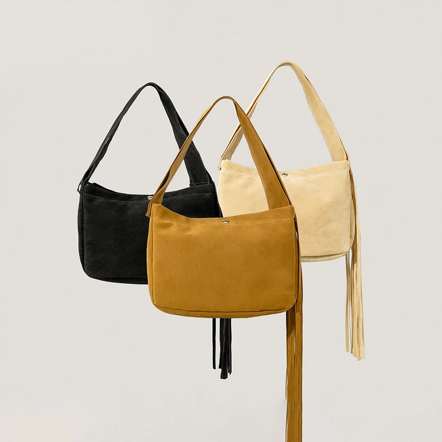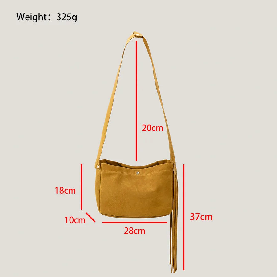 Retro Tassel Handbag Faux Suede Shoulder Crossbody Bag