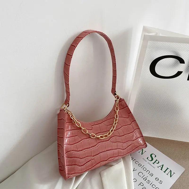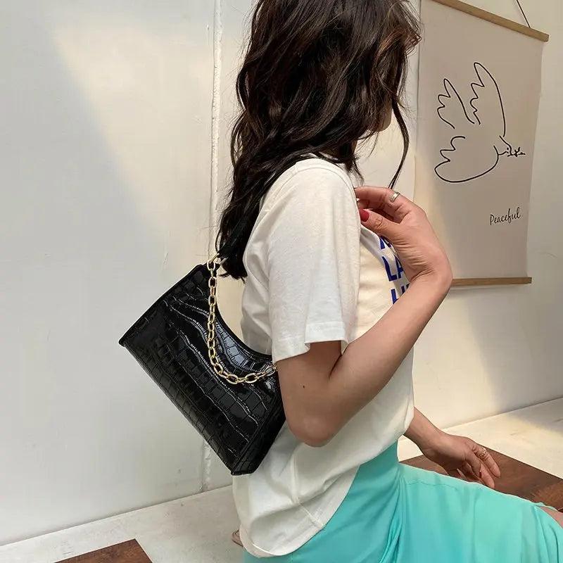 This women's shoulder bag blends retro style with casual elegance. It features a solid leather design and a convenient chain strap for added charm.