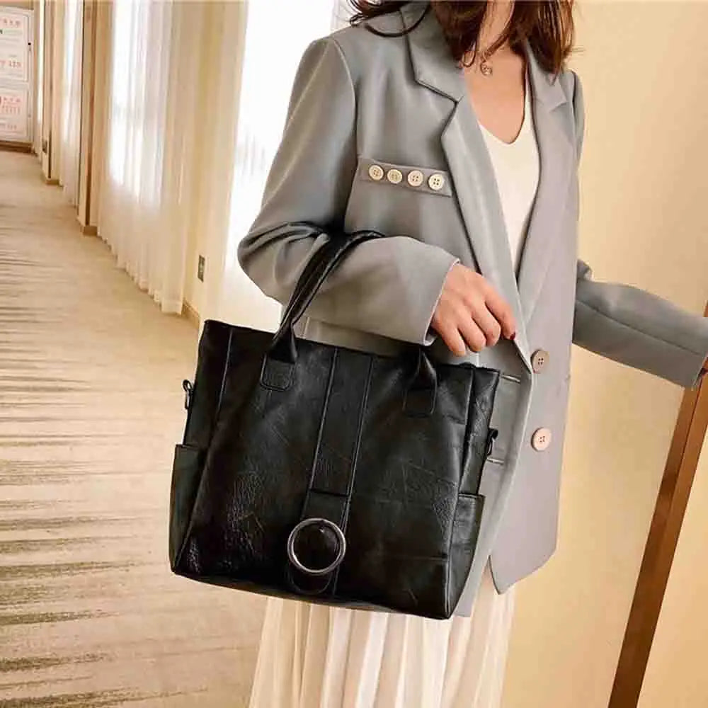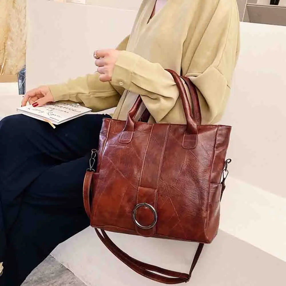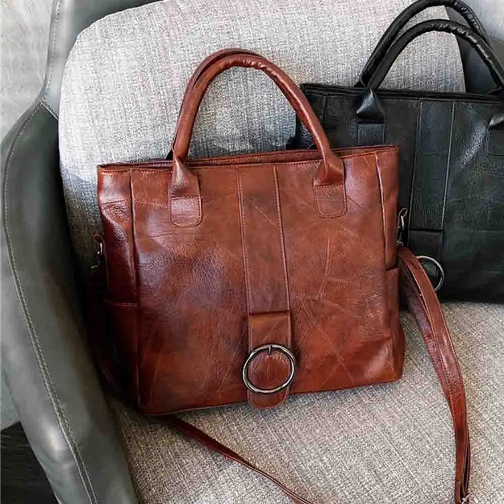 Retro Travel Shoulder Bag Soft PU Leather Tote Women's Handbag