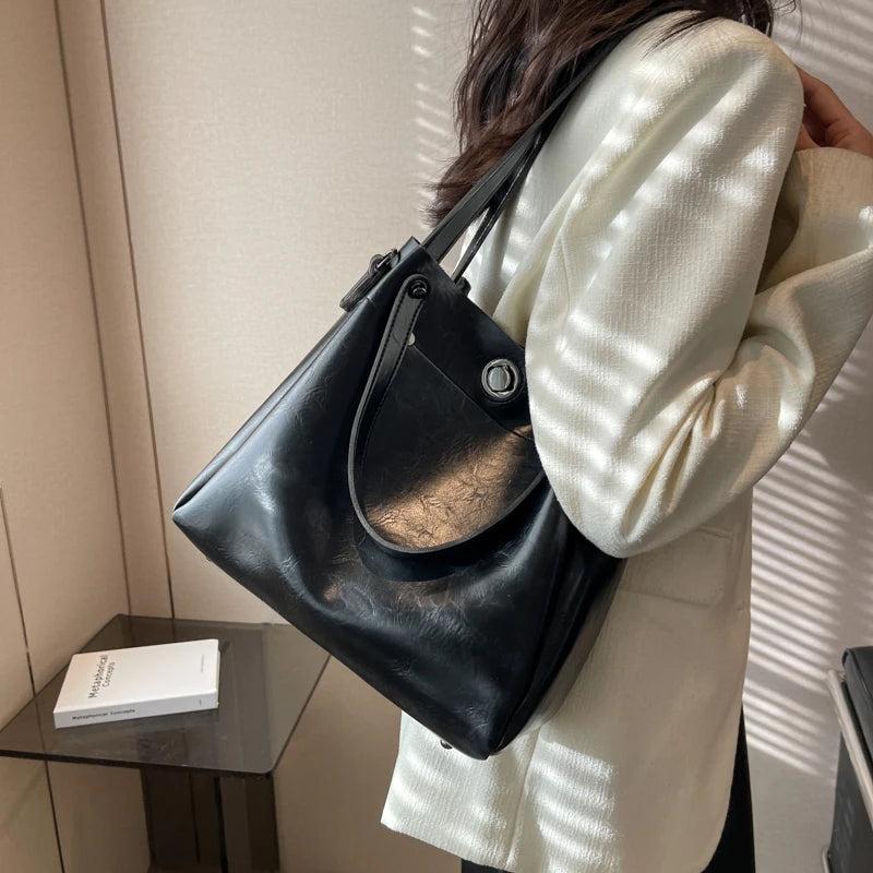 Retro Winter Bucket PU Leather Crossbody Shoulder Bags for Women