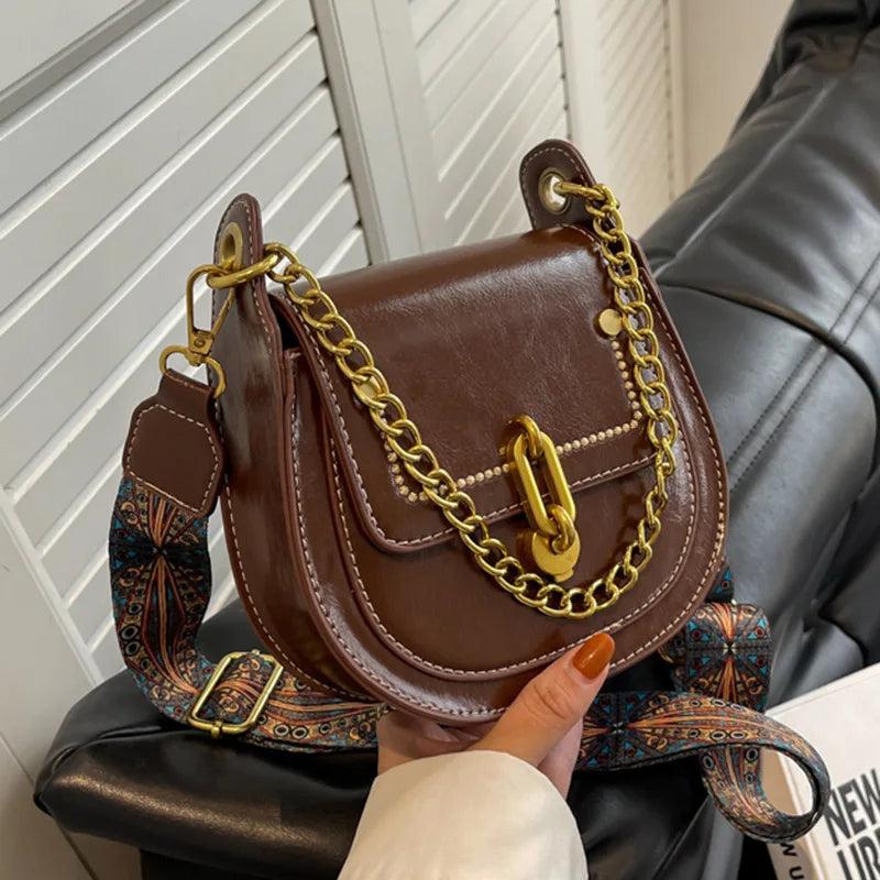 Retro Women Leather Shoulder Bag Chain Crossbody Handbag