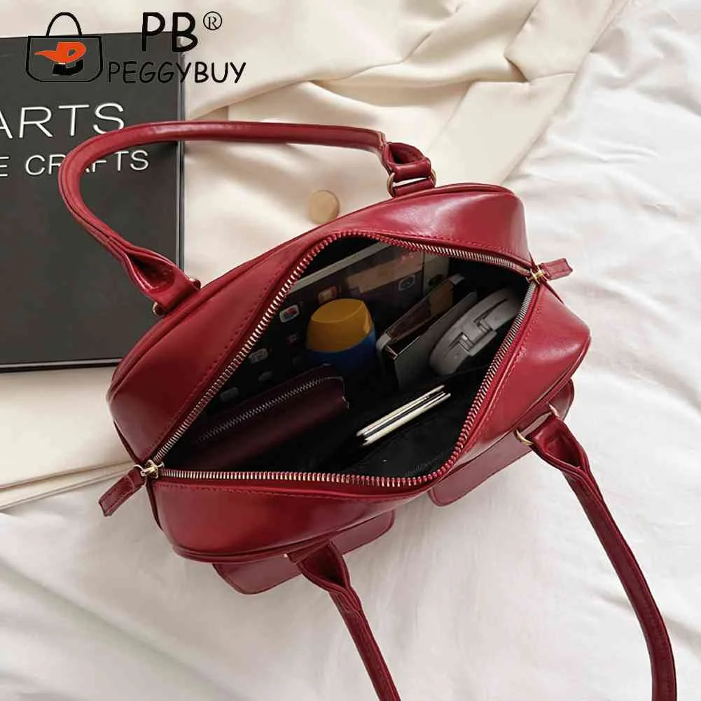 Retro Women Tote Bag Double Pocket PU Leather Shoulder Handbags