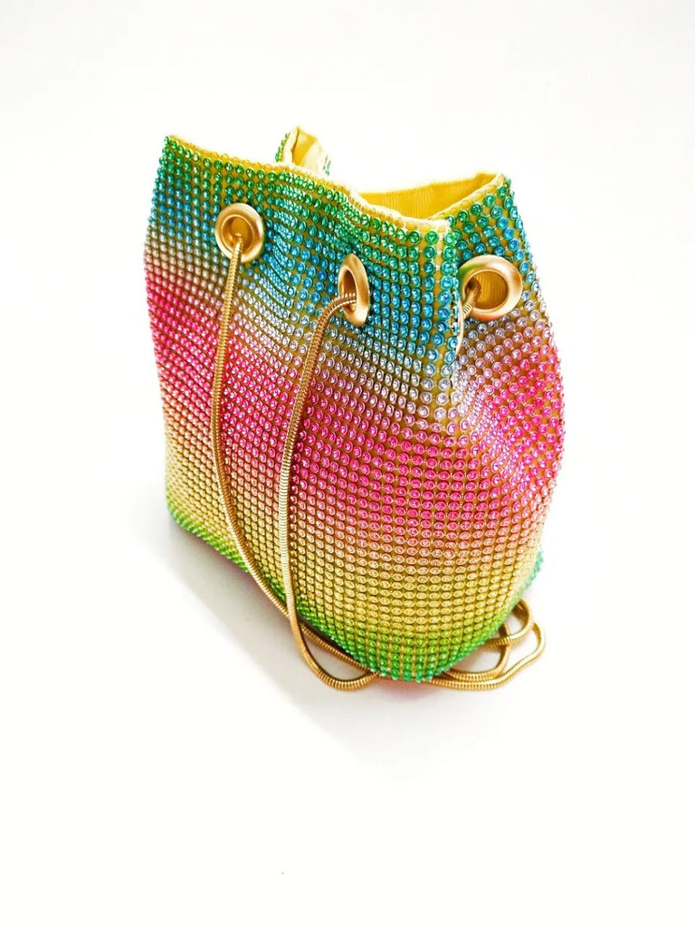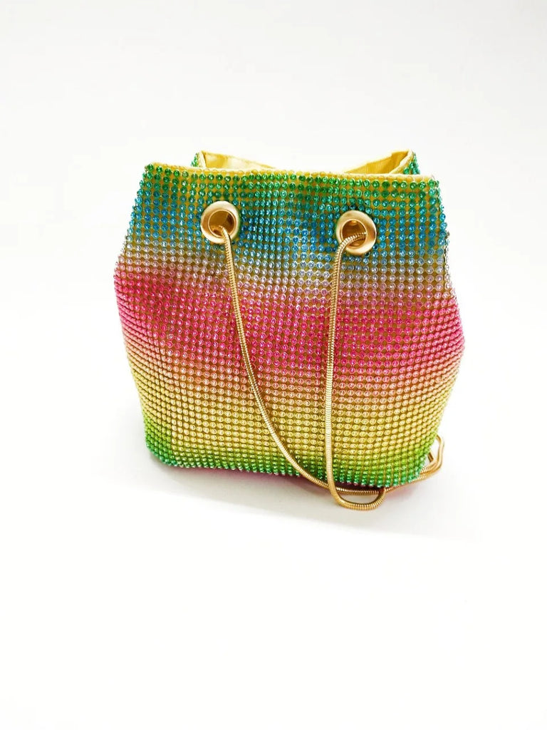 Rhinestone Bucket Bag Mini Handbag Clutch Rainbow Fanny Pack