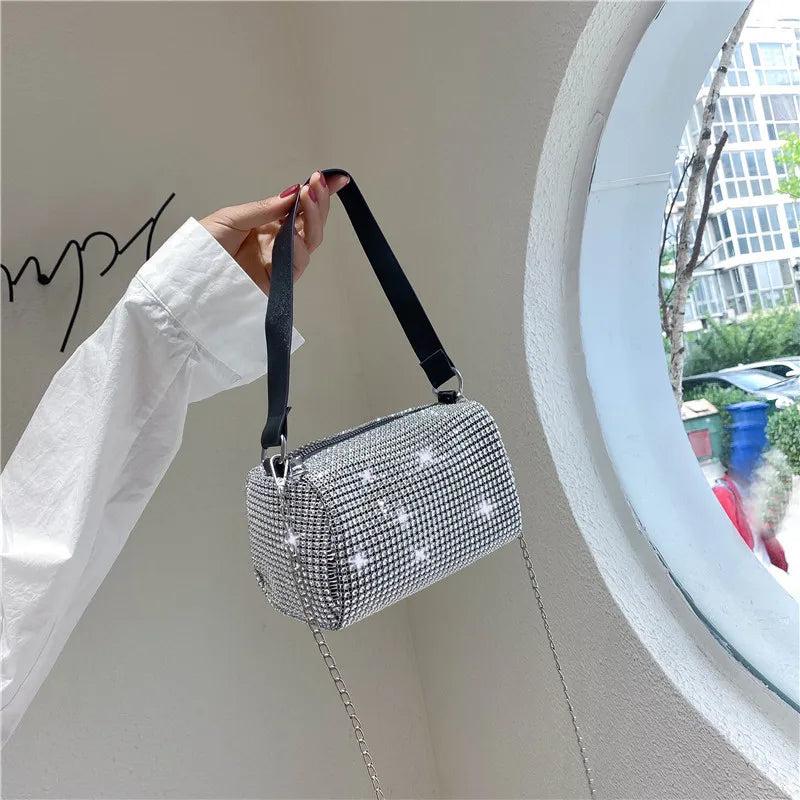Elegant rhinestone women's bag perfect for commuting or carrying makeup items. This bag offers a spacious interior for your essentials.