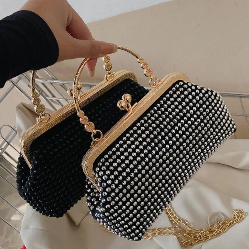 Elegant rhinestone handbag perfect for evening dinners and events. Features a chain strap for versatility.
