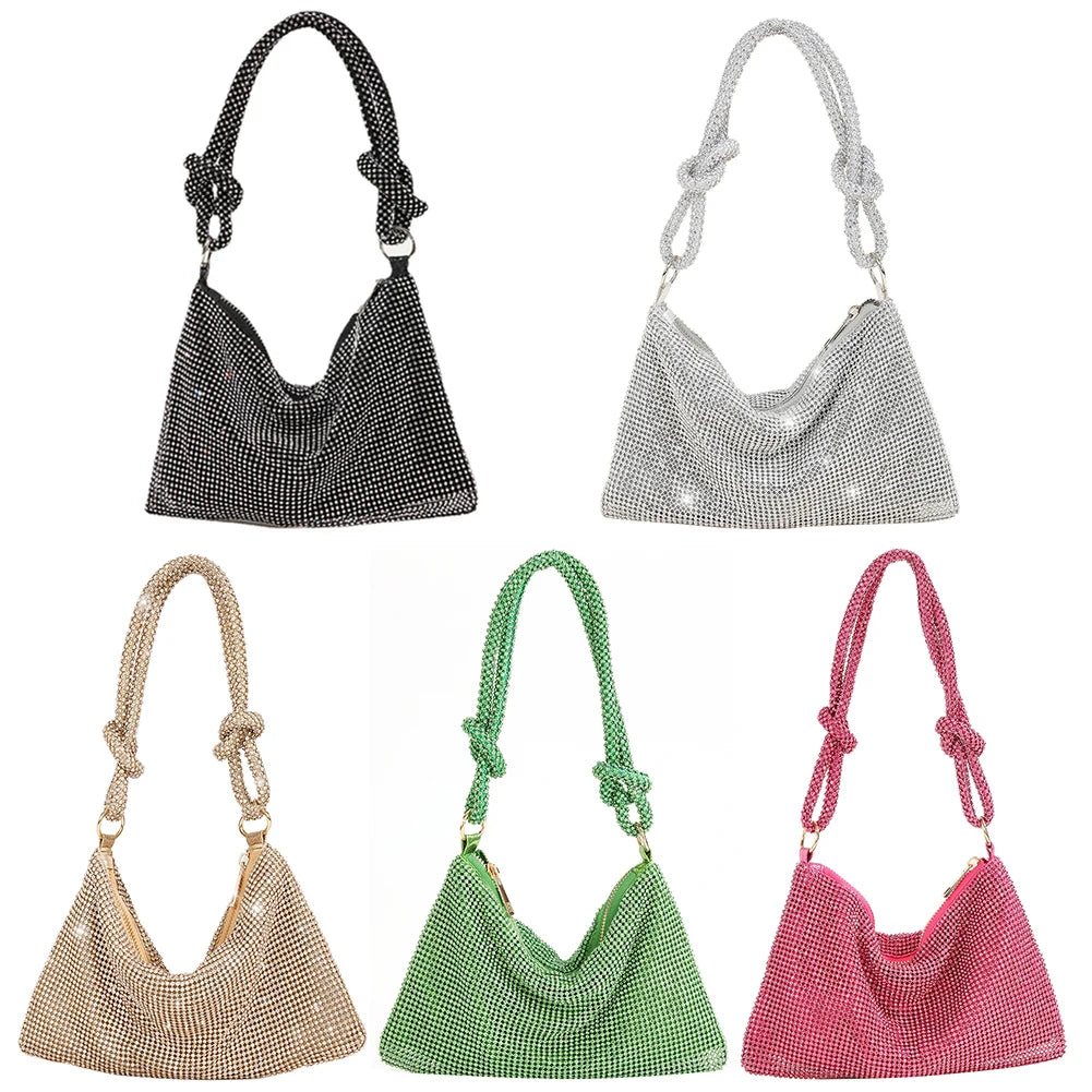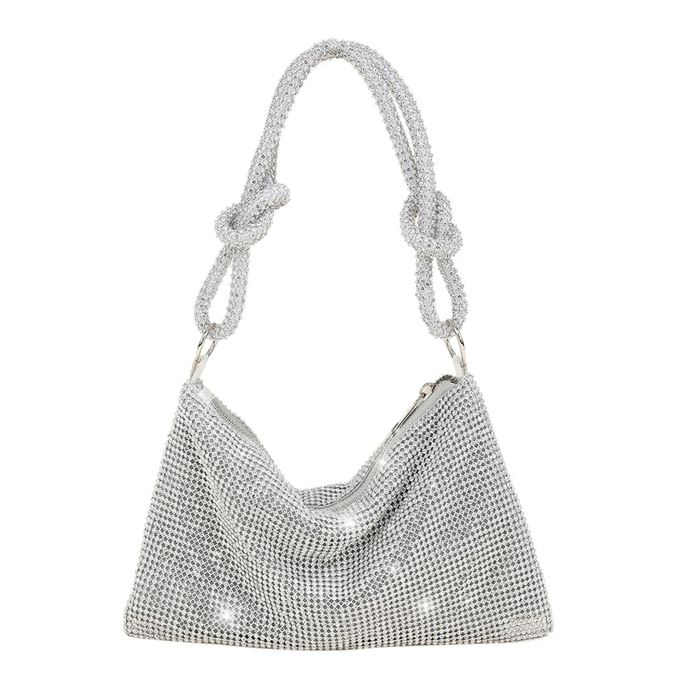 Elegant clutch bag perfect for dinner parties and weddings, adorned with sparkling rhinestones.