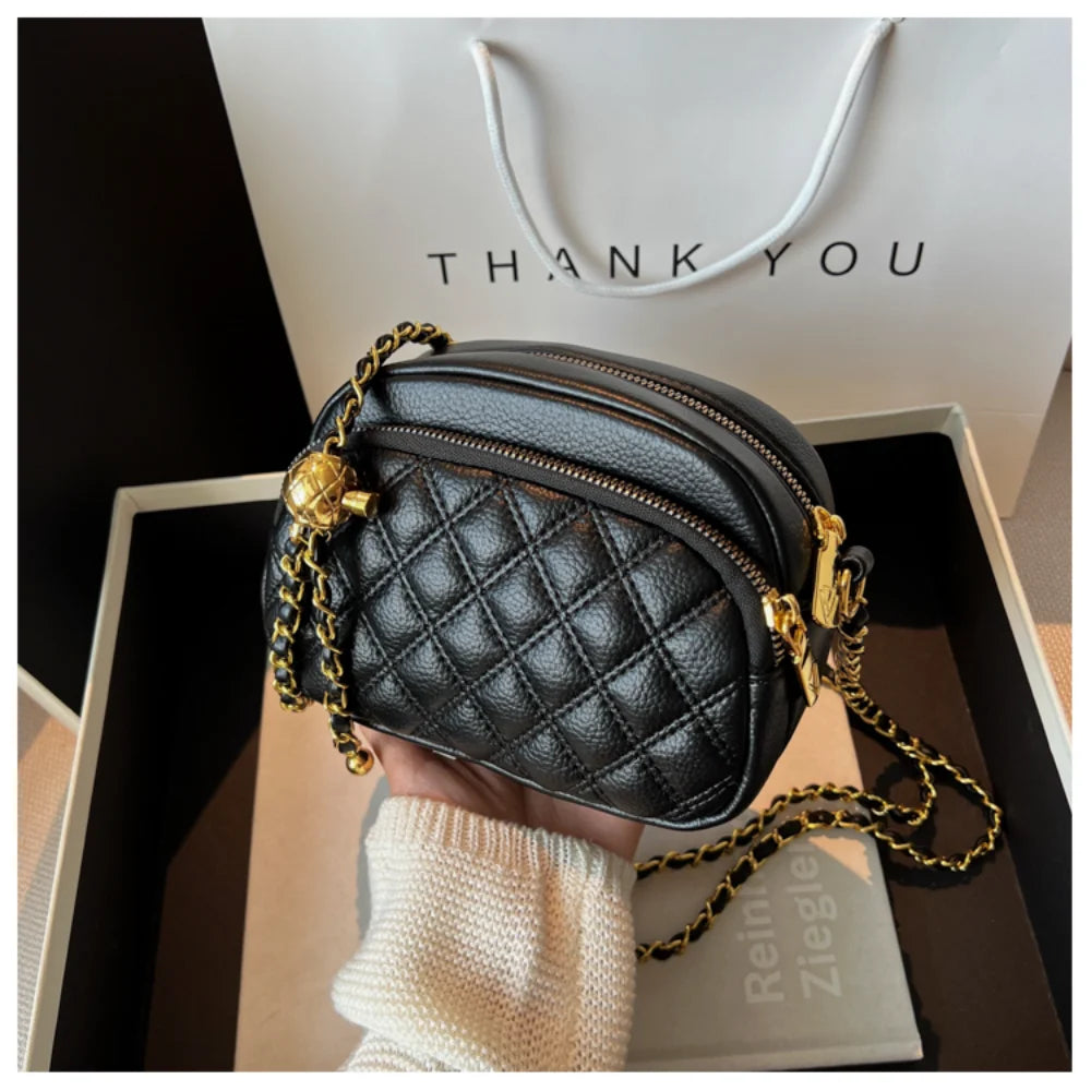 Rhombic Embroidery Crossbody Bag Women Chain Shoulder Handbag