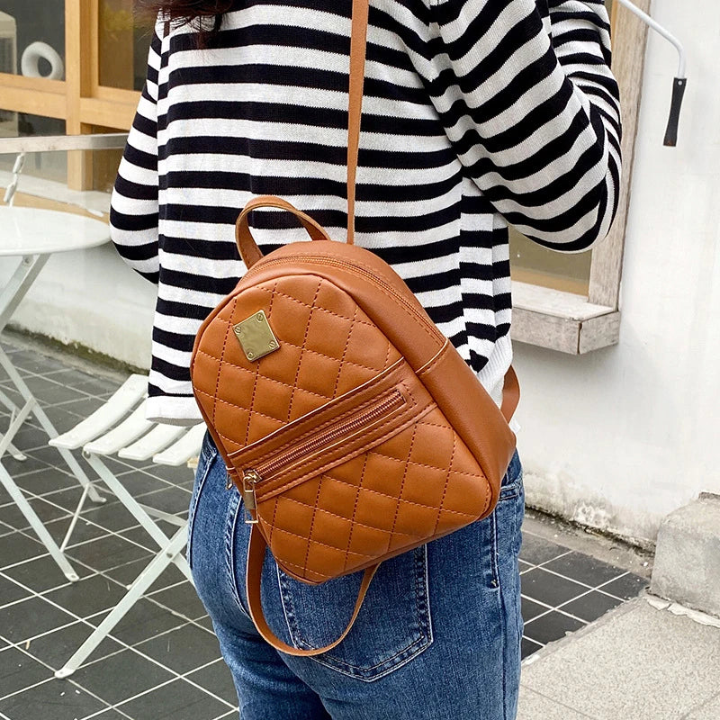 Stay stylish and practical with this casual rhombus patterned women's bag that can be worn as a backpack or shoulder bag.