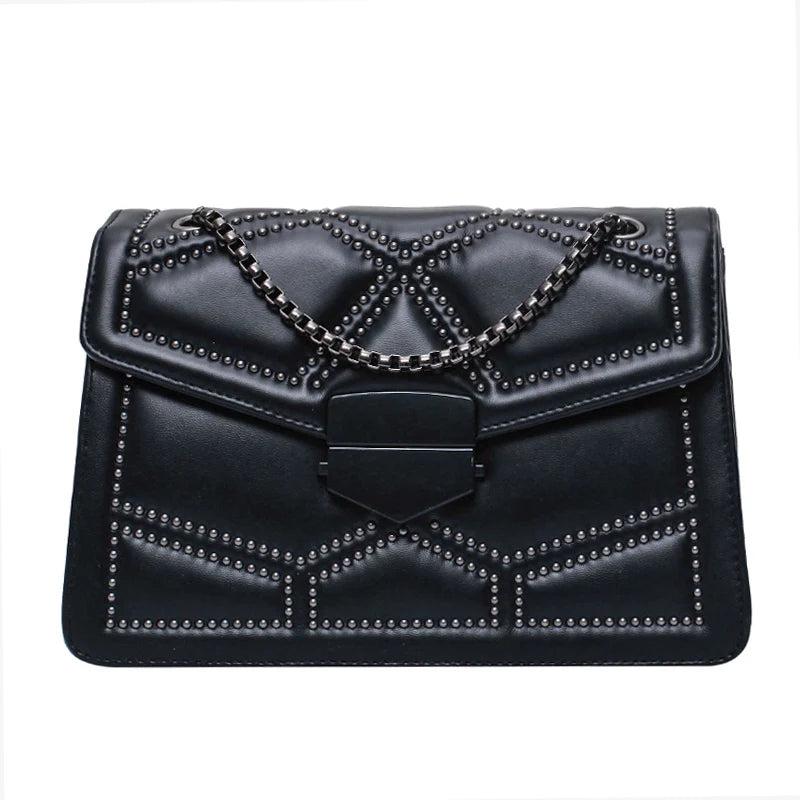 - Stylish crossbody bag with rivet chain design