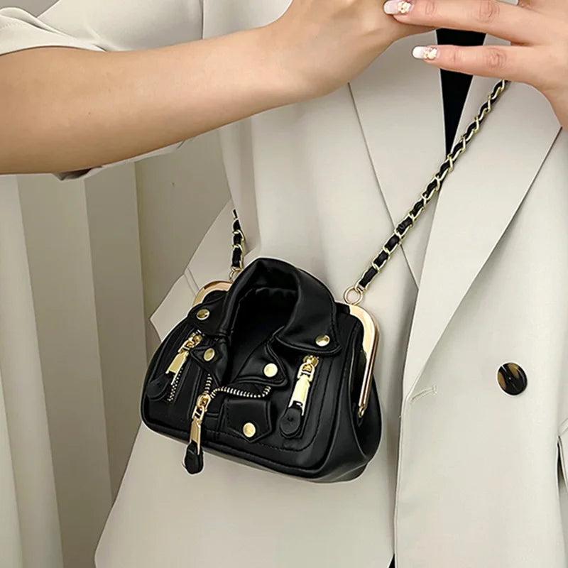 This stylish jacket crossbody bag is perfect for women who want to make a fashion statement. The unique clothes shape design with rivets adds a trendy touch to your outfit.
