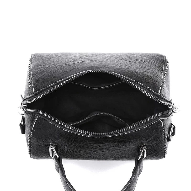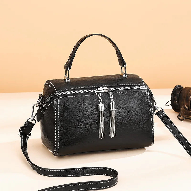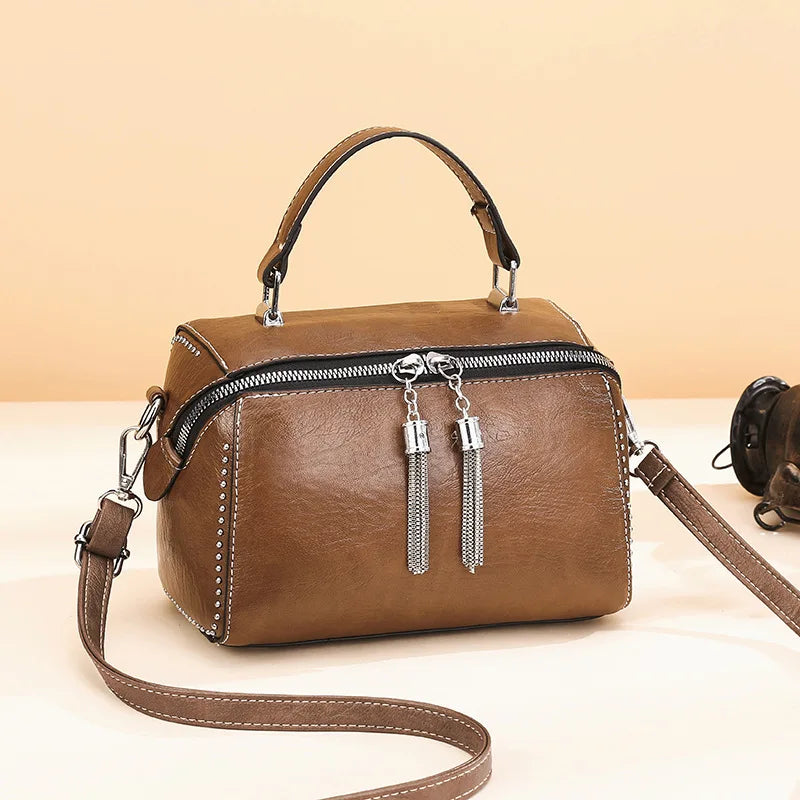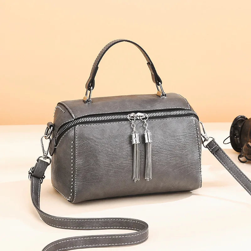 Elevate your style with this rivet shoulder bag made of high-quality PU leather. This versatile crossbody bag is a must-have for every fashion-forward woman.