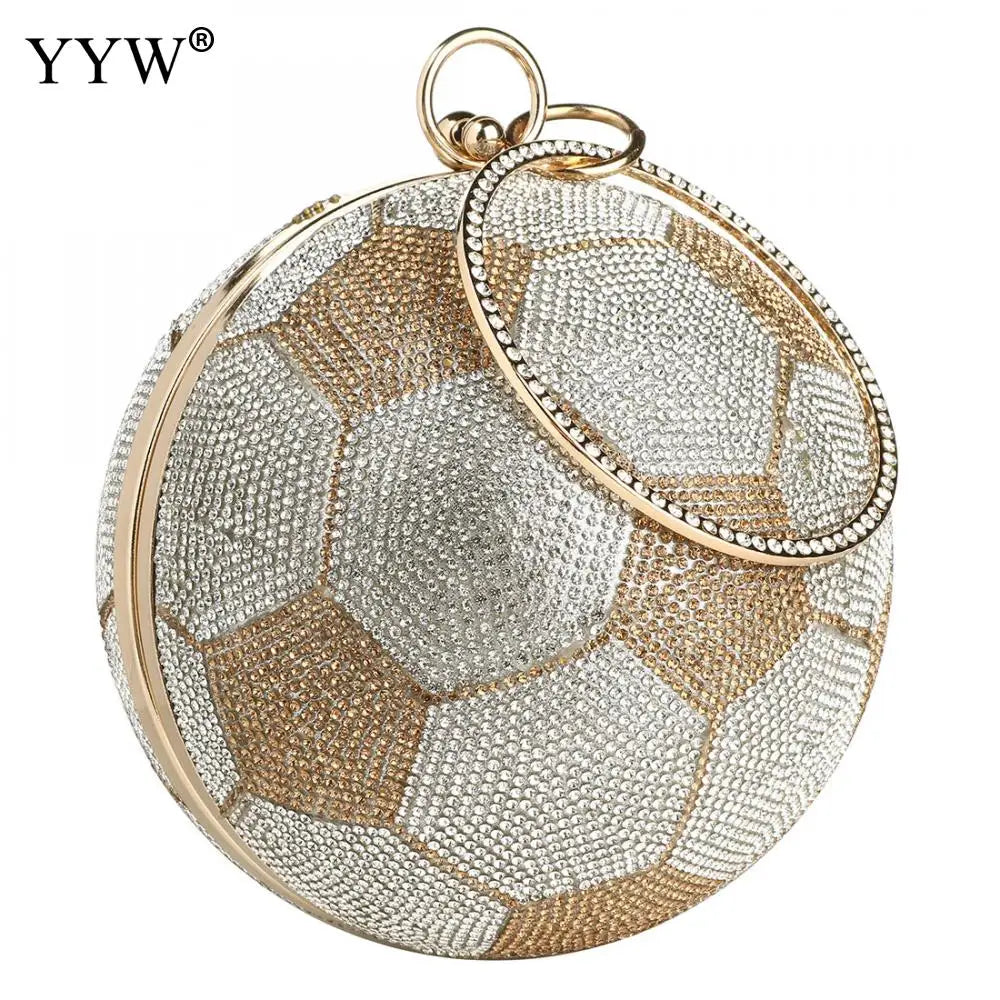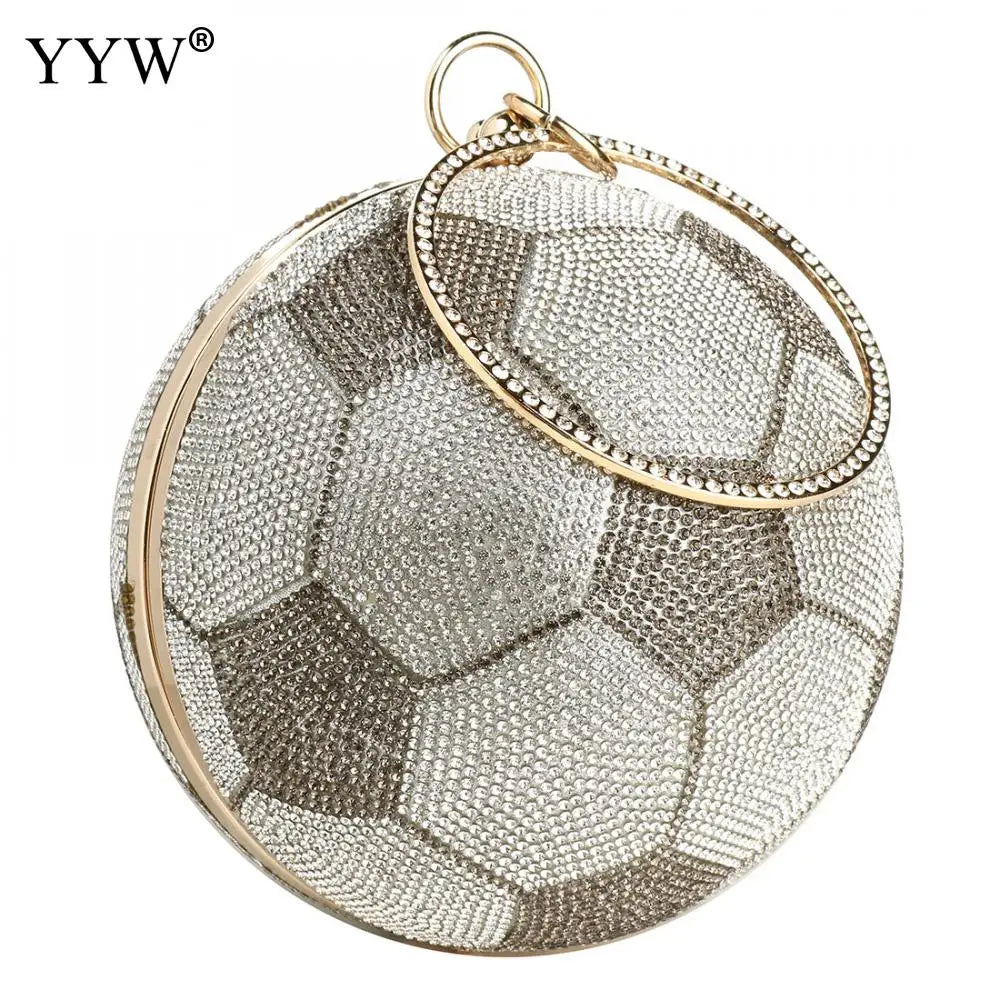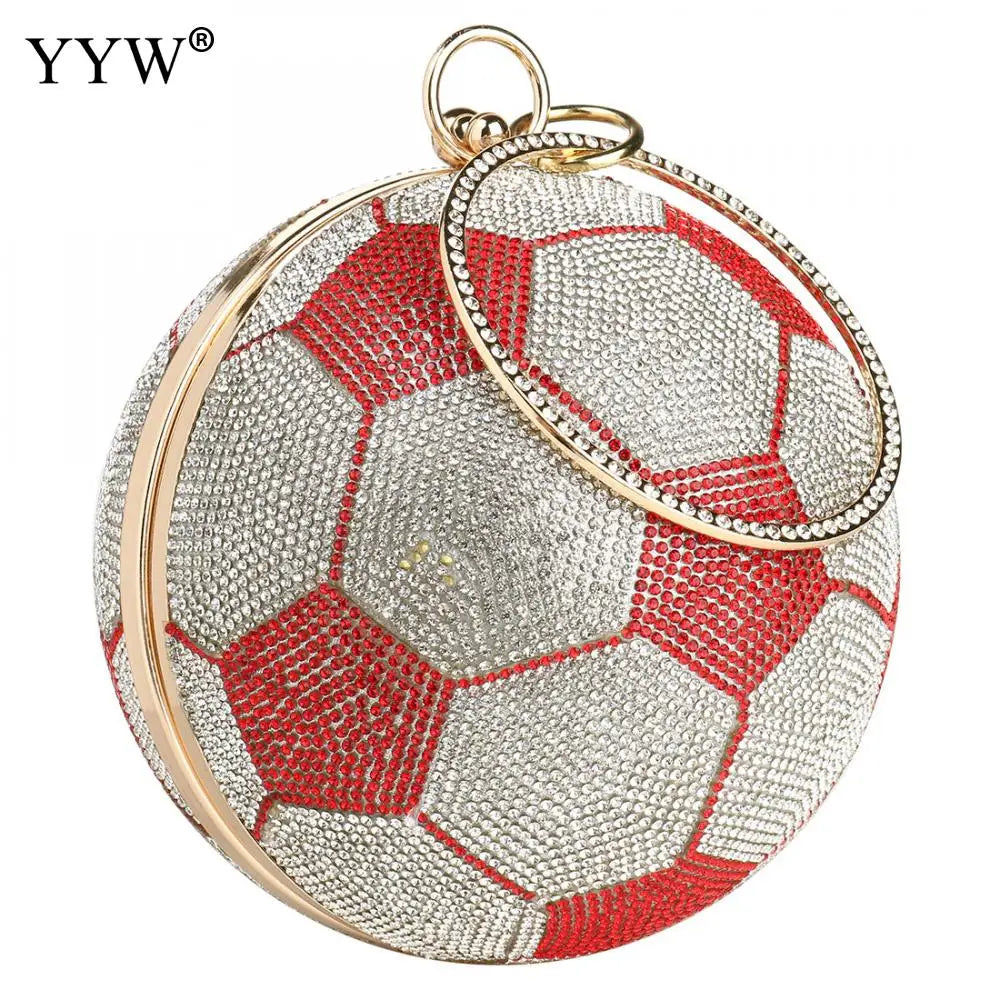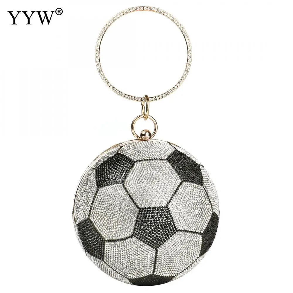 This stylish round basketball shoulder bag is perfect for women. It features an acrylic chain for a trendy look.