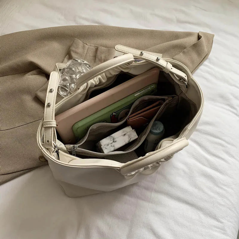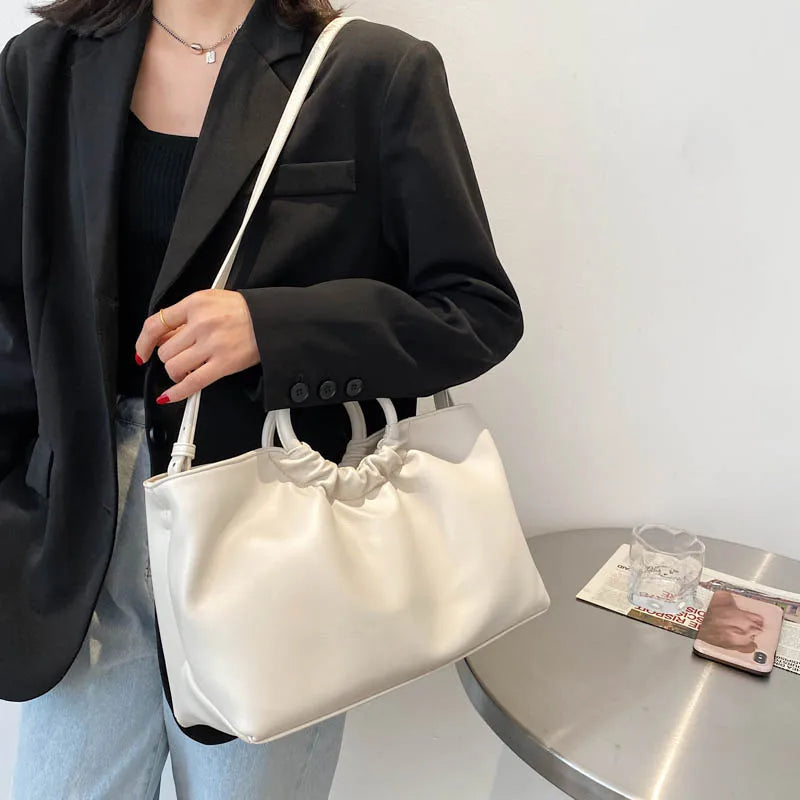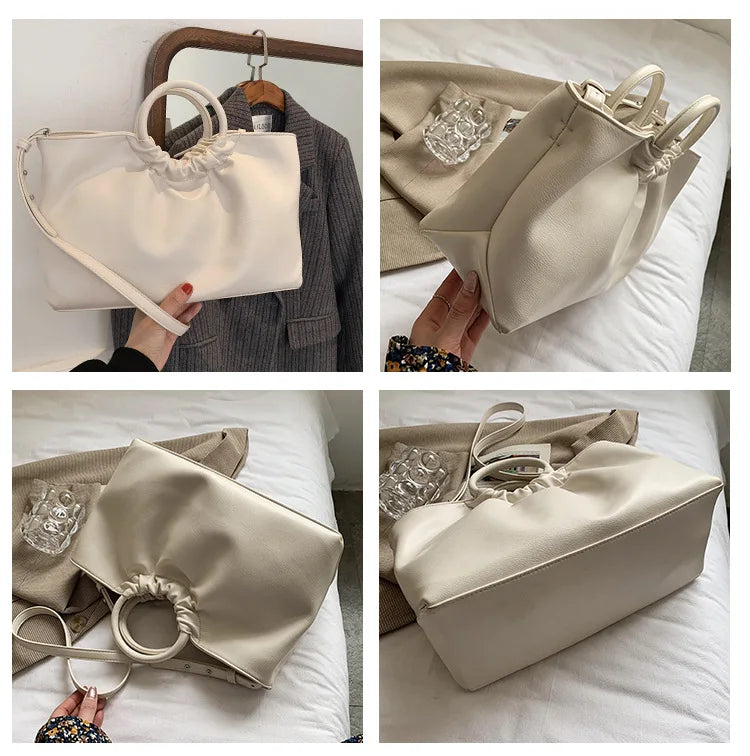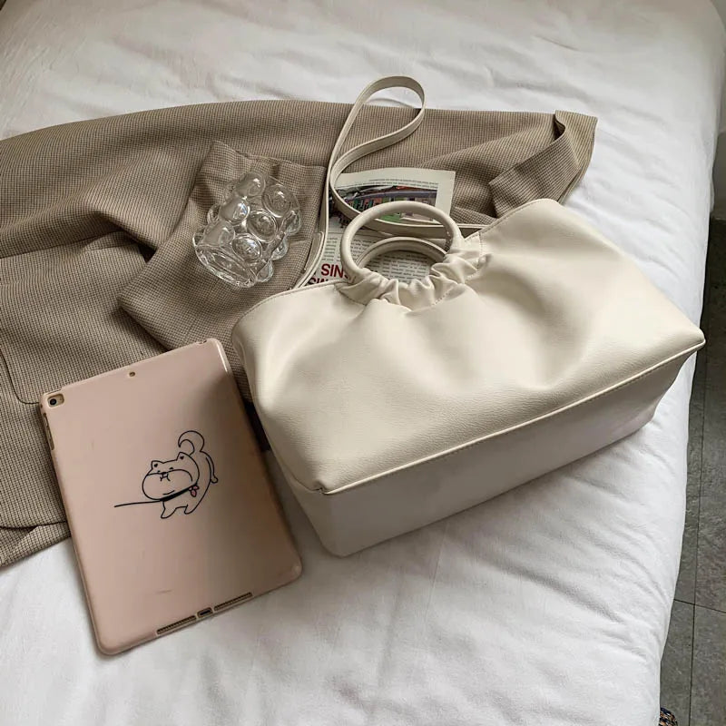 Stylish and spacious women's handbag made of high-quality PU leather with a round handle design. Perfect for daily use.