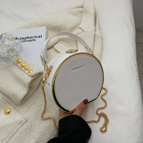 This stylish round crossbody bag is perfect for women who desire a compact yet fashionable accessory. Made of high-quality leather, it features a zip closure and a comfortable shoulder strap for easy carrying.