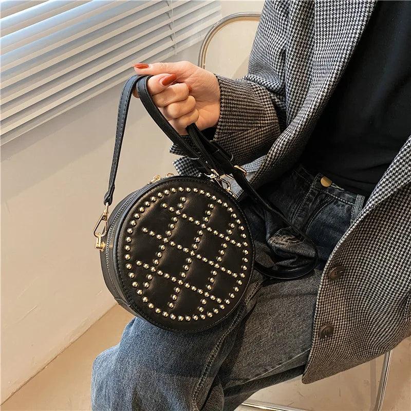 This stylish round shape handbag is made of PU leather, designed for women's fashion. It can be worn as a crossbody bag or a shoulder bag, making it versatile and chic.
