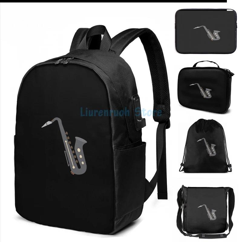 Saxophone Woodwind Aerophone Musicians Gift USB Charge Backpack