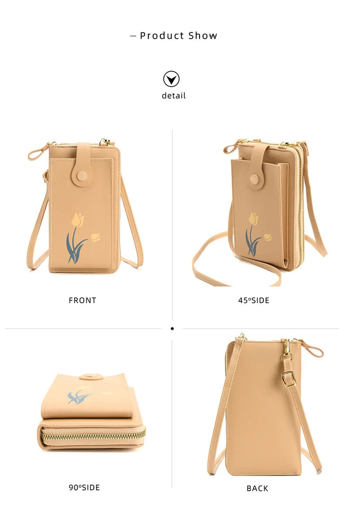 SCOFY Floral Small Phone Bag Women PU Leather Crossbody Mini Shoulder Purses Han