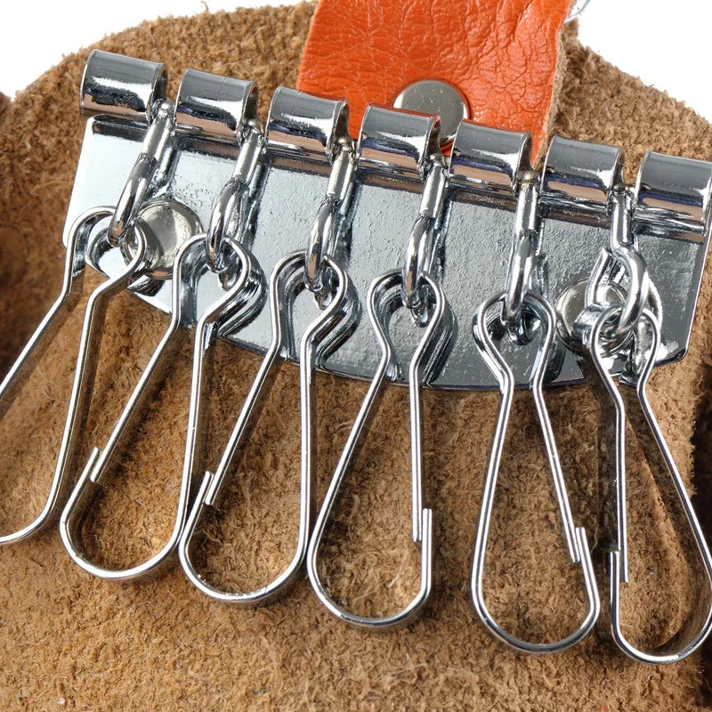 Keep your keys organized with this high-quality key holder made from second layer cow leather. Features 6 positions and a durable metal buckle.