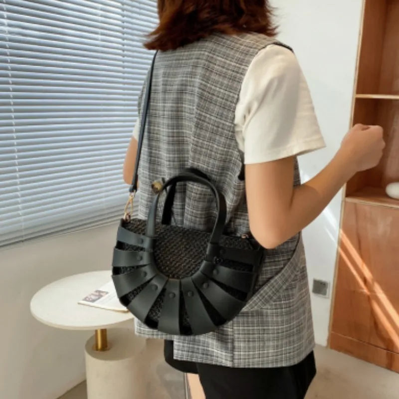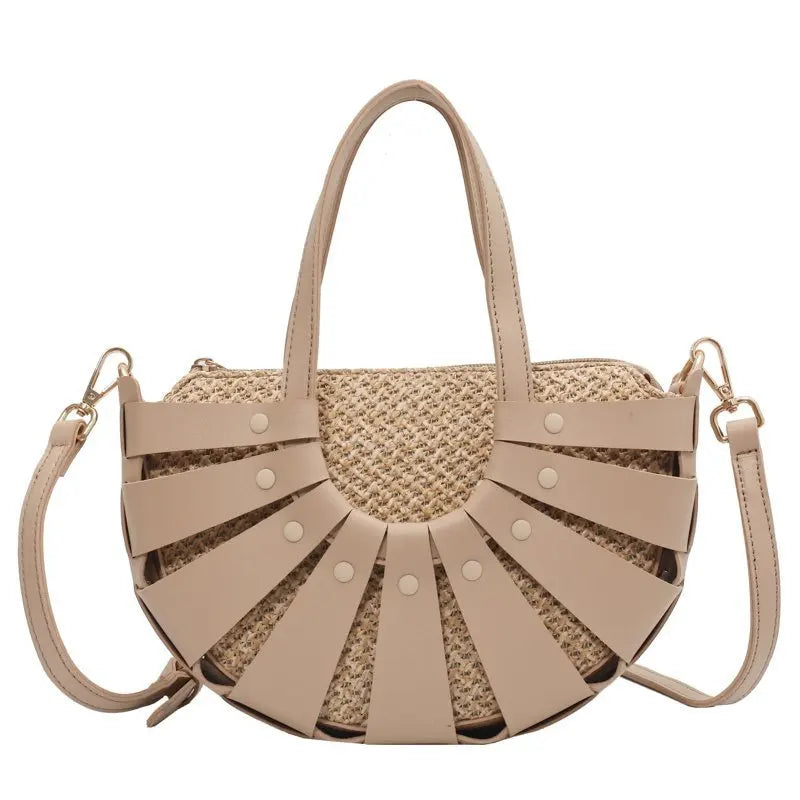 This straw bag is perfect for women who need a large-capacity bag for their essentials. It features a stylish semi-circular design and is great for everyday use.
